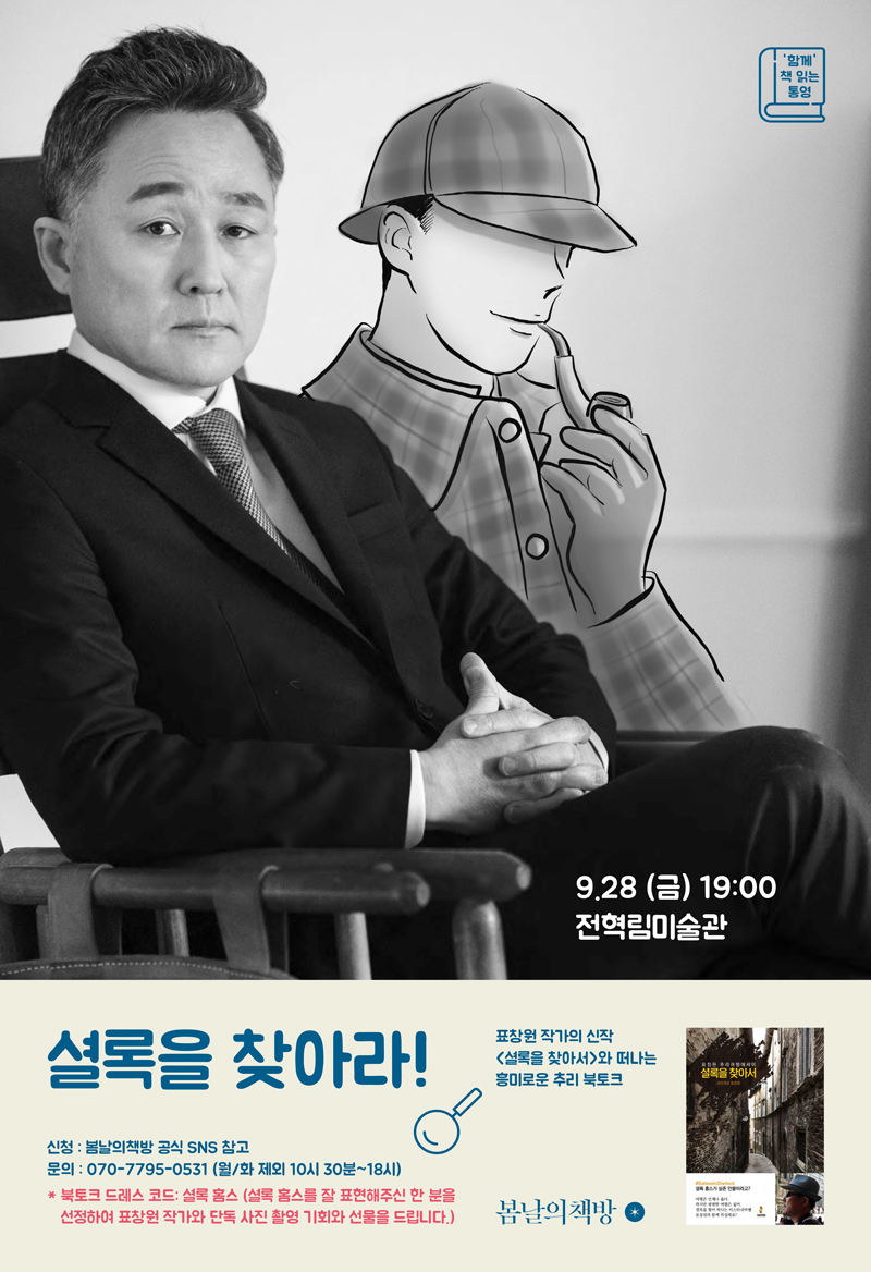 2018년 9월 28일 저녁 7시 전혁림미술관에서는 표창원 작가님과 함께하는 북토크가 열렸습니다. 실존 인물 셜록을 찾아서 떠난 유럽 여행기 <셜록을 찾아서>의 각 장소마다의 사건과 스토리, 작가님의 추적을 생생하게 들어보는 시간이었어요. ^^ 흥미진진한 이야기와 질문, 조금 쑥스럽지만 독자분들의 용기가 돋보였던 드레스코드 이벤트까지! 함께해주신 모든 분들 감사합니다. 언젠가 다시 멋진 추리소설 작가님으로 표창원 작가님을 초대할 날을 기다리겠습니다 :)