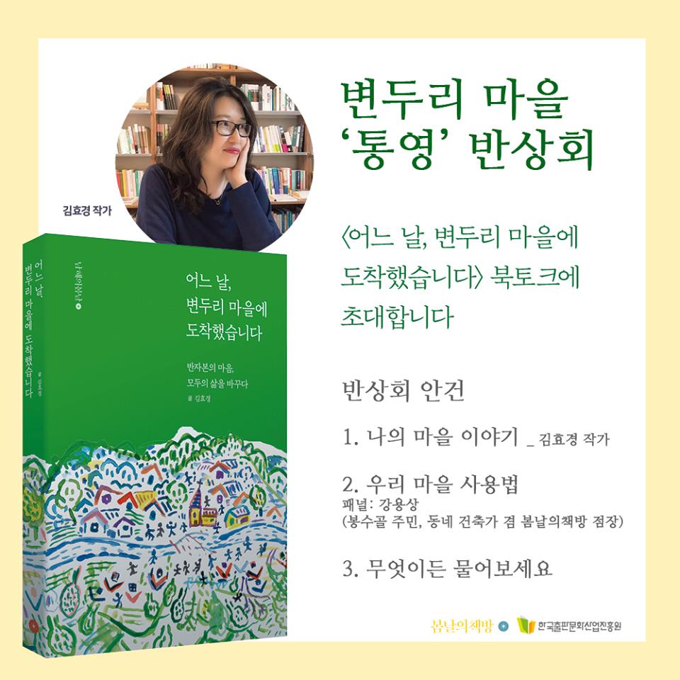 폭우를 뚫고 정말~ 많은~ 분이 "변두리 마을 '통영' 반상회"에 함께해 주셨는데요.(감동 감동) <어느 날, 변두리 마을에 도착했습니다> 저자인 김효경 작가님의 마을 이야기도 듣고, 봄날의책방 점장이자 동네 건축가이신 강용상 님의 통영 정착기와 봉수골 이야기도 듣다보니 정말 빠르게 시간이 흘렀어요. 행복은 결국 '우리 이웃', 사람들과 좋은 관계를 맺는 데 있다라는 이야기를 나누며 봄날의책방이 그런 이웃이 되길 진심으로 바라게 됐습니다. 자주 오세요. 그리고 종종 이야기 나눠요. 함께해주신 분들 정말 감사합니다! 다음달에도 좋은 프로그램으로 또 만나요!